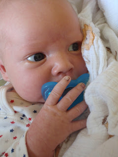 I am getting so big I can help hold my binkie in! Usually I pull it out and scream though :0)